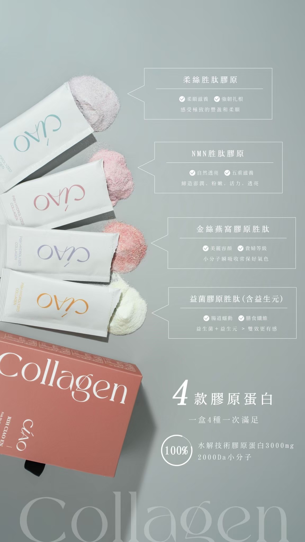 🇹🇼台灣日喬恩 法國魚鱗膠原蛋白綜合版 2000𝗗𝗮小分子 易吸收🔓 一盒12包 有齊4種口味及功效 🩵柔絲胜肽膠原 柔順滋養の強韌扎根 感愛極致的豐盈和柔順 🩷NMN胜肽膠原 自然透亮 ◎五重滋養 締造澎潤、粉嫩、活力、透亮 💜金絲燕窩膠原胜肽 美麗容顏 ◎貴婦等級 小分子瞬吸收常保好氣色 💛益菌膠原胜肽(含益生元) 腸道蠕動◎膳食纖維 益生菌+益生元 >雙效更有感